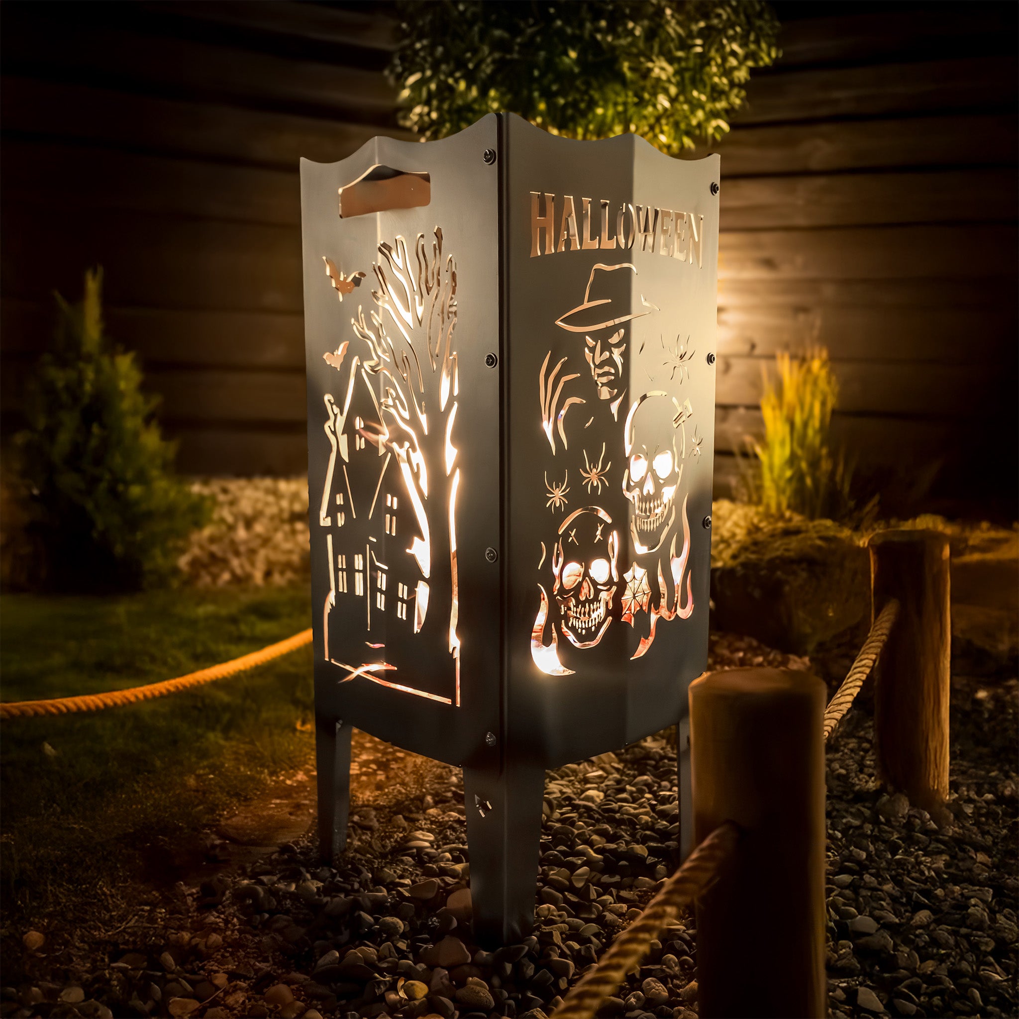 Wähle aus 6 exklusiven Halloween-Motiven und gestalte deine Feuersäule nach deinem Geschmack. Du entscheidest, ob alle vier Seiten dasselbe Motiv zeigen oder ob du zwei Motive kombinierst. So wird deine Feuersäule garantiert zum Mittelpunkt deines Gartens – als Feuerkorb und Feuerstelle für stimmungsvolle Lagerfeuer-Abende.