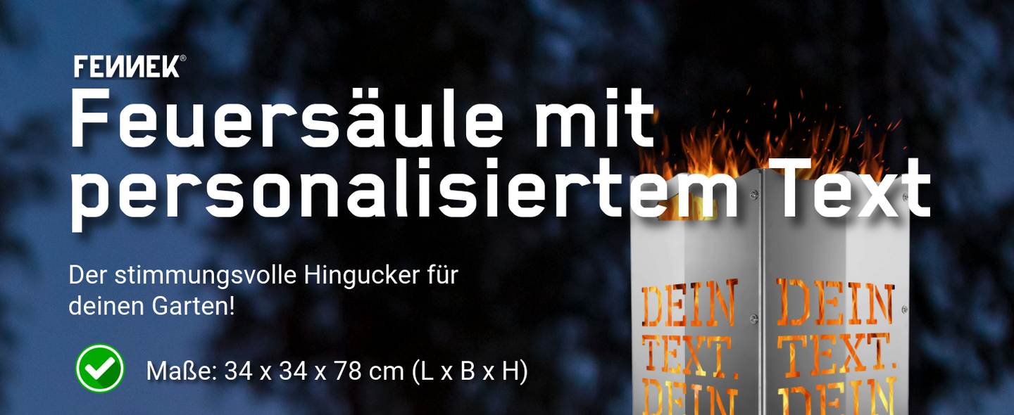 Die Feuersäulen sind für den Outdoor-Einsatz ausgelegt. Bei starkem Regen oder längerer Nichtbenutzung empfiehlt sich jedoch eine Abdeckung, um die Lebensdauer zu verlängern.