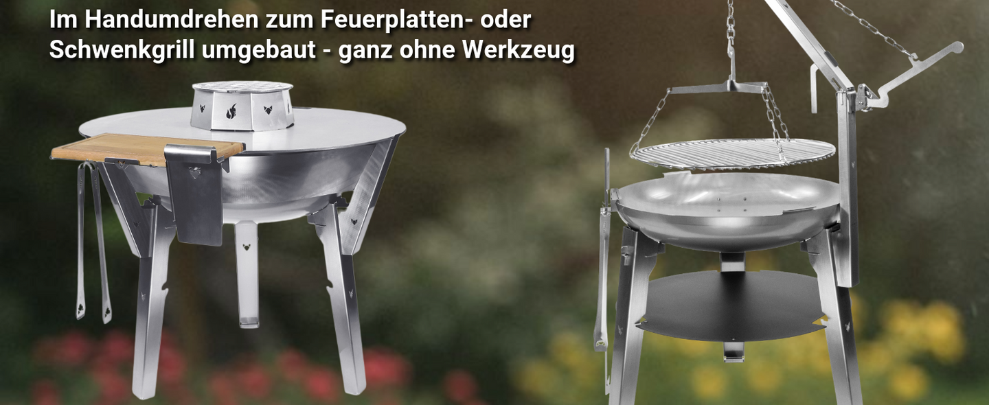 • Kann mit Feuerplatte und Schwenker genutzt werden
