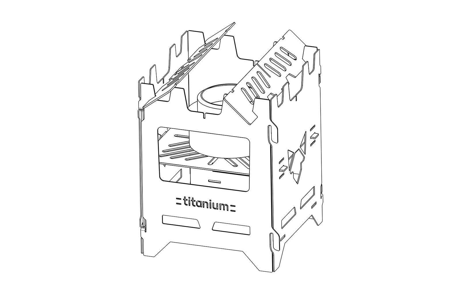 The titanium version is our lightest hobo at around 425 g and is therefore perfect for long tours. Its sophisticated design ensures optimal heat distribution for a wide range of cookware. The multi-bowl included in the package protects the surface below, but can also be used as a baking tray.