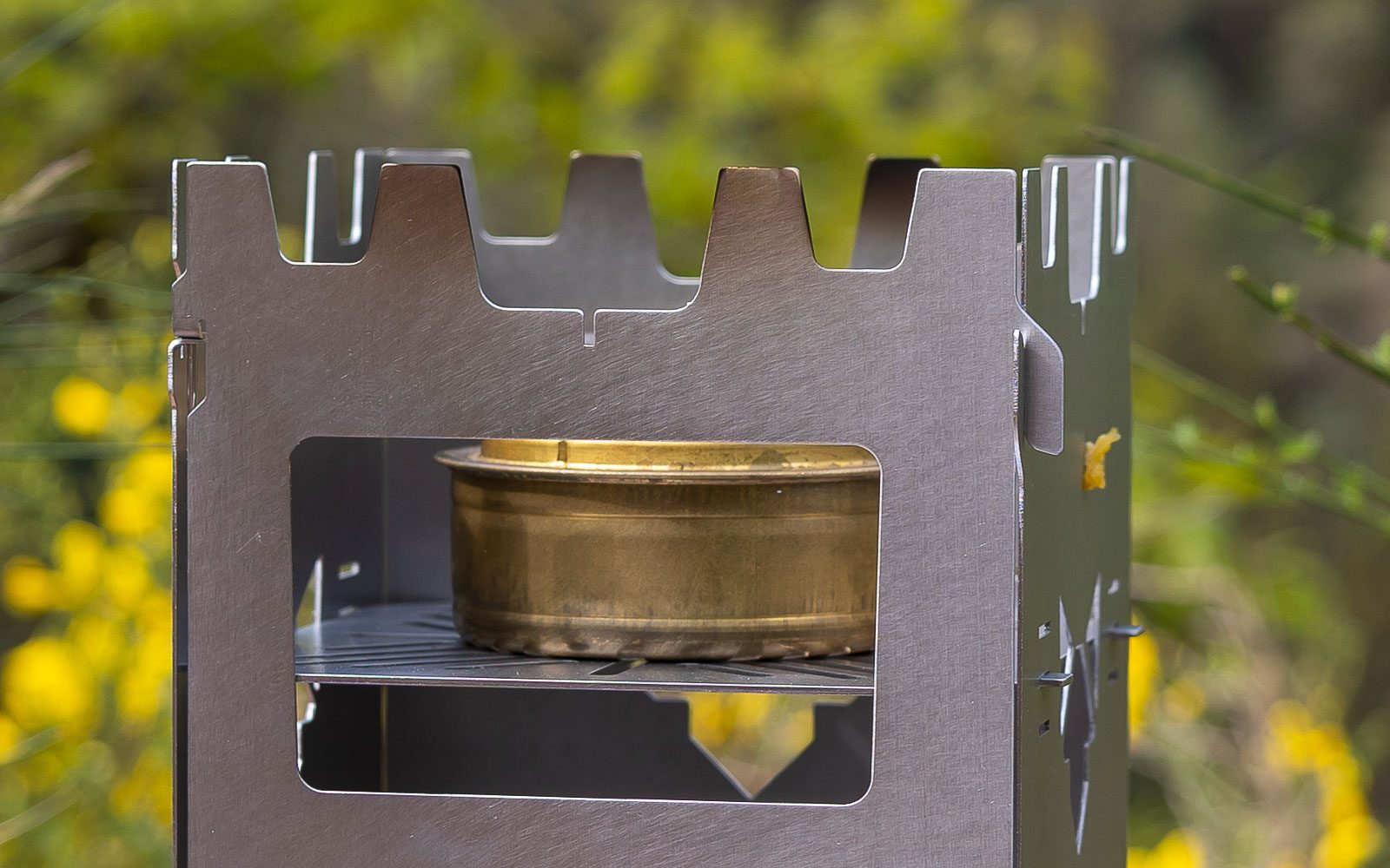 The fire grate allows you to set up and operate a spirit stove such as the Trangia at the perfect height.