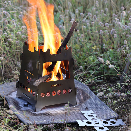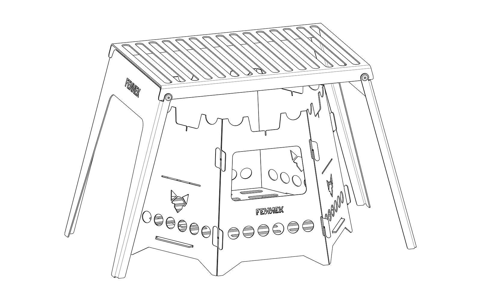 Perfect for cooking, grilling or keeping warm. Can be used as a small table for preparing food or as a raised shelf. Thanks to the ingenious design, the folding grill fits together with the Hobo fits perfectly in your pocket.