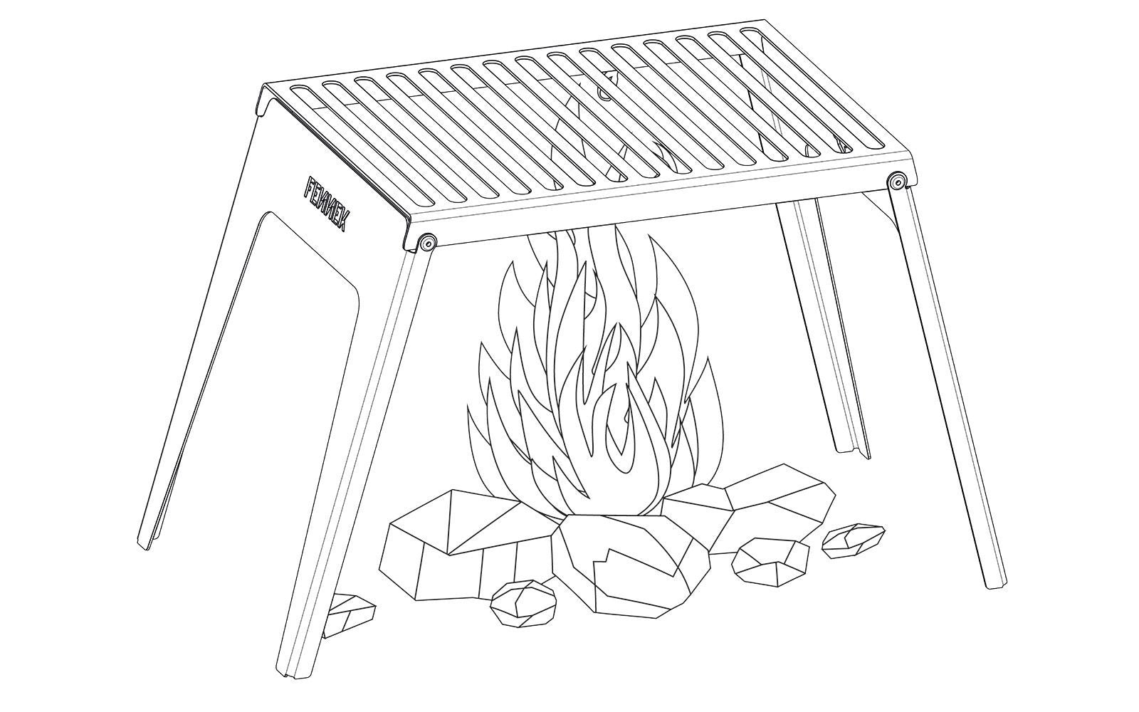 Thanks to the riveted construction, virtually no heat is transferred from the grate to the folding feet.