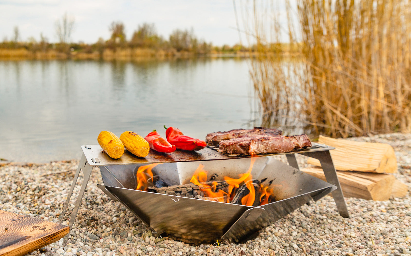 On its own over a campfire, or as an addition to your HEXAGON fire bowl, you get an extremely compact and high-quality grill option. The 2-part grill surface offers a grill grate and a fire plate at the same time, and thus almost endless possibilities. Meat, vegetables, fried eggs, scrambled eggs with bacon, pancakes, and so on... See for yourself how simple and compact our 4Fire is. A well thought-out design and unparalleled quality characterize our FENNEK products.