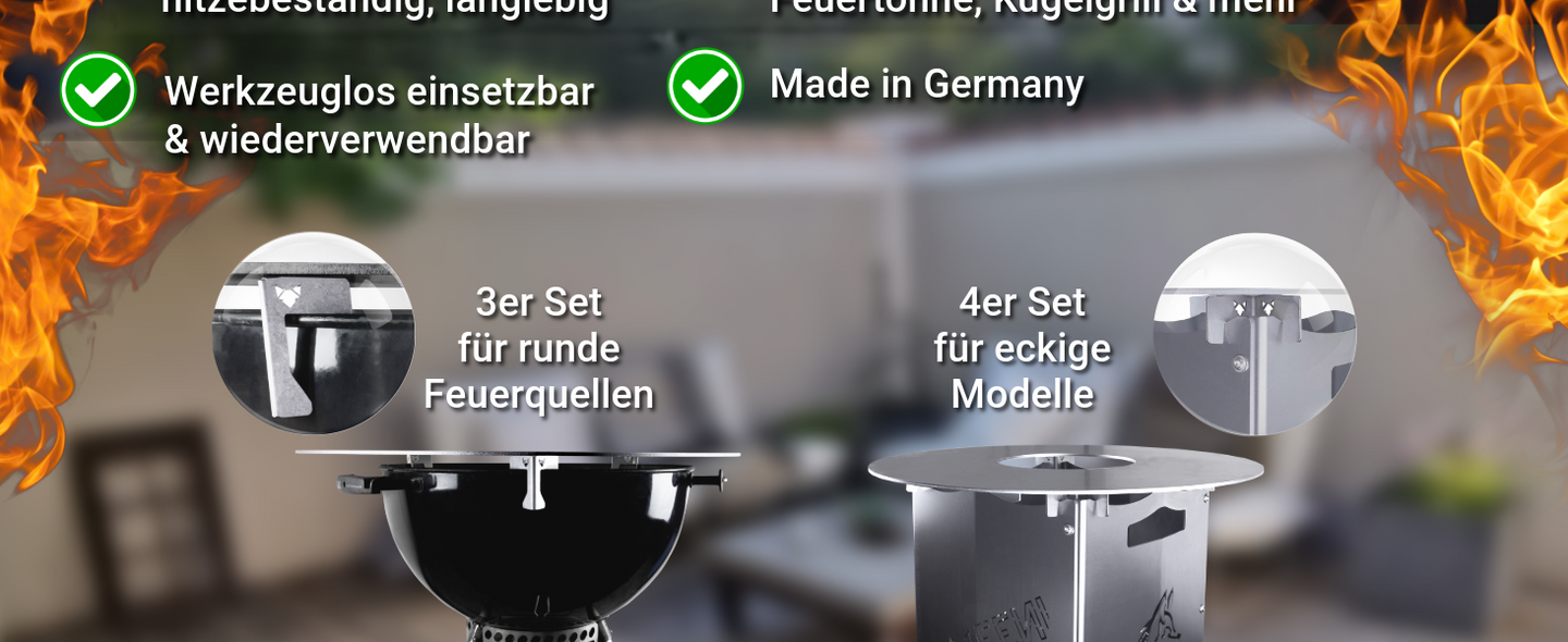 The perfect spacers for all fire plates – Ideal for fire barrels, fire bowls, kettle grills, and much more. – Perfect for DIY fire plate grills | Made in Germany!