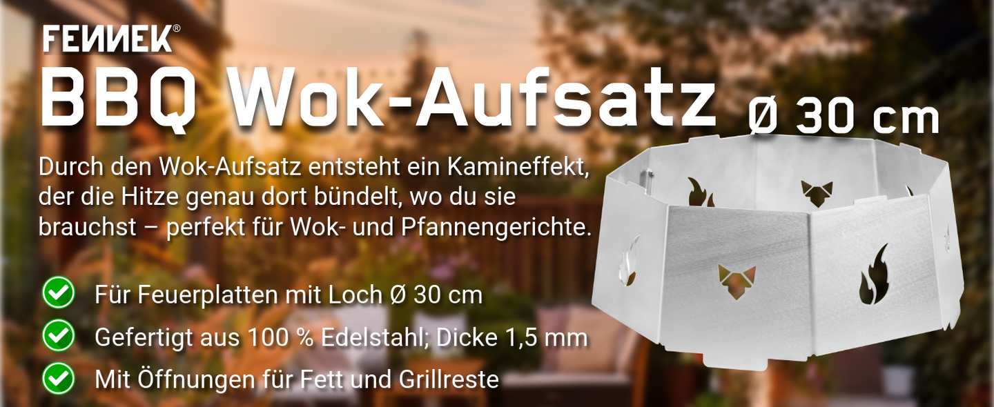 FENNEK BBQ Wok-Aufsatz für Feuerplatten mit Loch Ø 30 cm