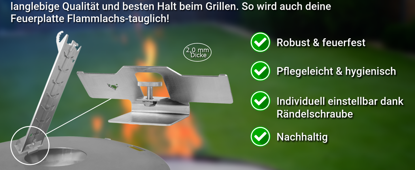 Die Vorteile unseres Feuerplatten Adapters für Flammlachshalterungen auf einen Blick: