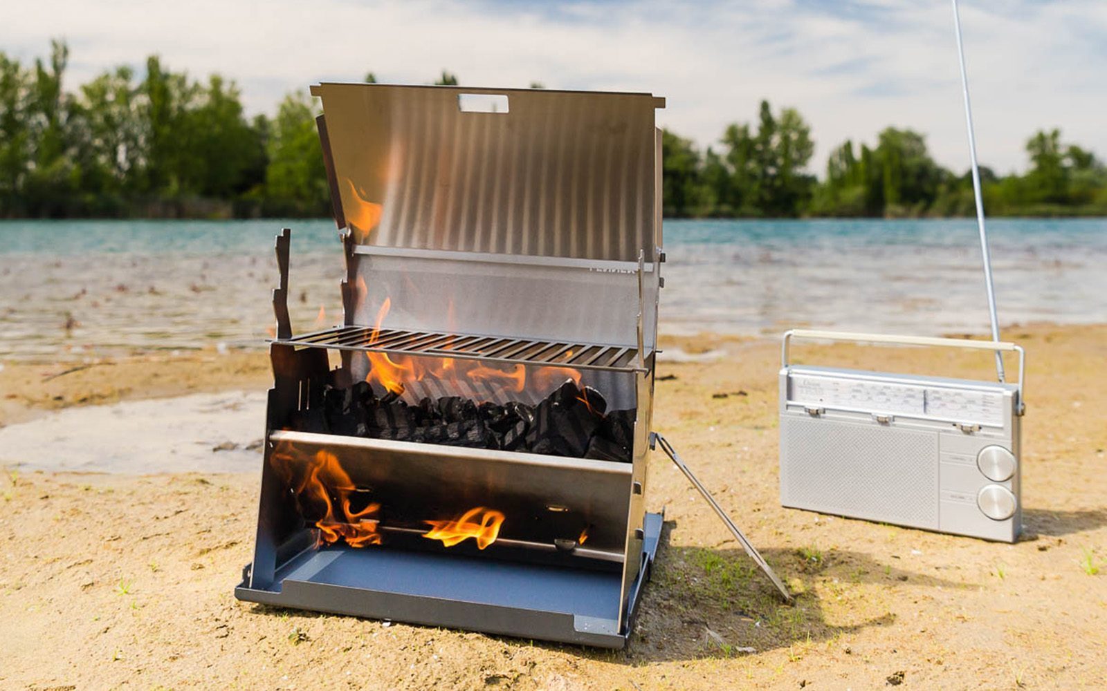 Dieser Grill aus 100 % rostfreiem Edelstahl ist extrem langlebig und eignet sich perfekt für den Einsatz beim Camping, beim Trekking oder sogar für eine Mahlzeit auf dem Balkon.