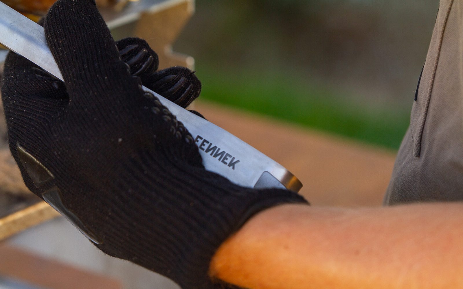 Die Grillzange ist extra lang, das sorgt für den nötigen und sicheren Abstand zu Hitze und Flamme.