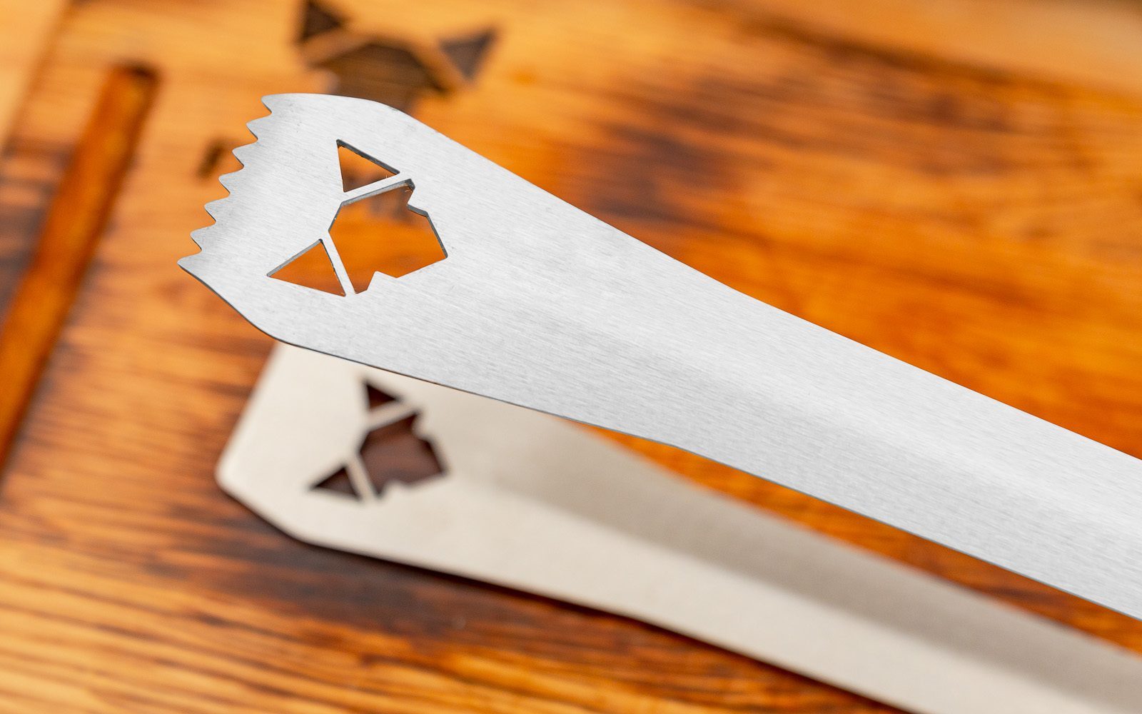 Durch bewussten Verzicht auf ein Gelenk oder verbaute Federn lagern sich keine Essensreste auf der Grillzange ab.