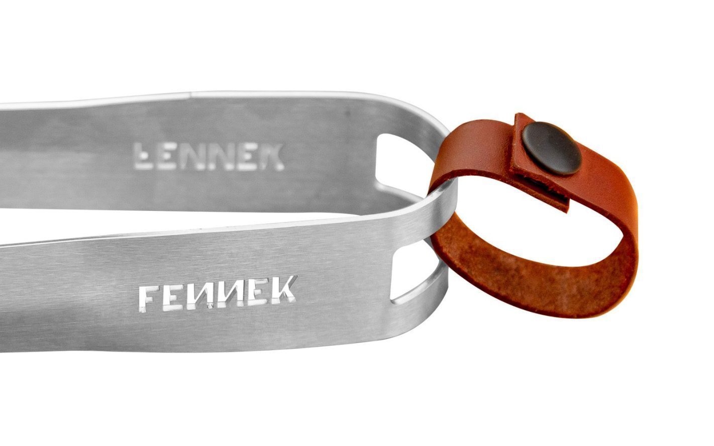 Integrierter Flaschenöffner. Lederband dient als Verschluss oder zum Aufhängen der Zange.